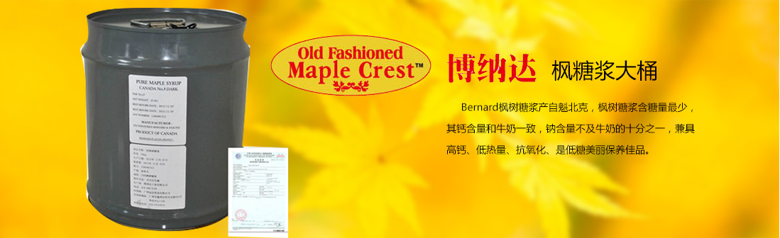 <美丽迷人的枫树,除了观赏之外,还是加拿大重要的经济来源之一。加拿大的糖枫树,树汁含糖量极高,熬制成枫糖浆,, 也是加拿大最有名的特产之一。目前全世界百分之七十的枫糖制品集中在魁北克。这种枫糖浆香甜如蜜,风味独特,富含矿物质,是很有特色的纯天然的营养佳品,能养颜美容,还能减肥,深受欢迎。bernard枫树糖浆产自魁北克,枫树糖浆含糖量最少,其钙含量和牛奶一致,钠含量不及牛奶的十分之一,兼具高钙、低热量、抗氧化、是低糖美丽保养佳品。>